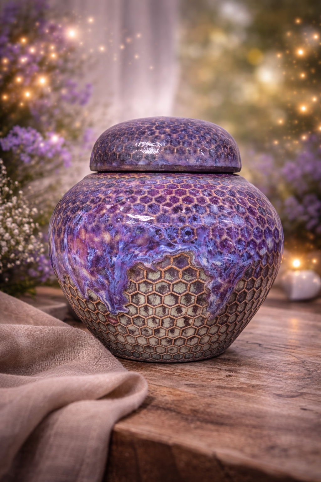 An informational page about Tara Hinkley, an artist who creates handcrafted ceramic urns. The page includes her portrait, a description of her passion for creating art, and photographs of colorful, artistic urns.